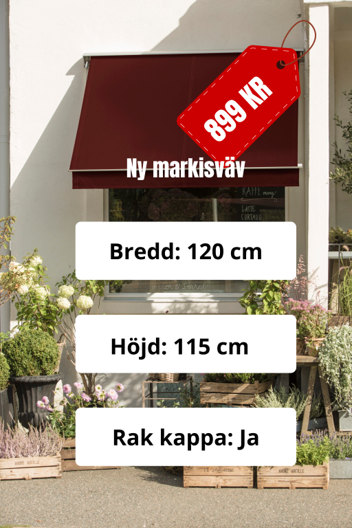 Fri frakt, prisgaranti och leverans på ca 8 dagar. Enkel montering – byt väv själv och njut av din nya markis direkt.